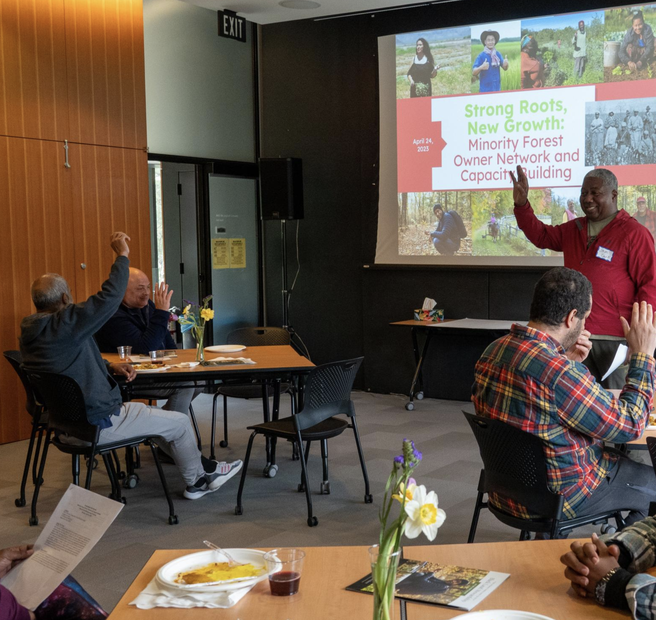 We came together as a project team to build a network to increase the capacity of landowners in the northeast to achieve their goals. Our aim for the kick-off workshop in April 2023 was primarily to listen to the ideas and thoughts of under-resourced forest owners and forest stewards regarding goals for the land under their care. For natural resource professionals, this was an opportunity for them to connect with minority forest owners and forest stewards and discuss how programs (both governmental and nongovernmental) can further conservation while supporting landowner interests and goals for their land.